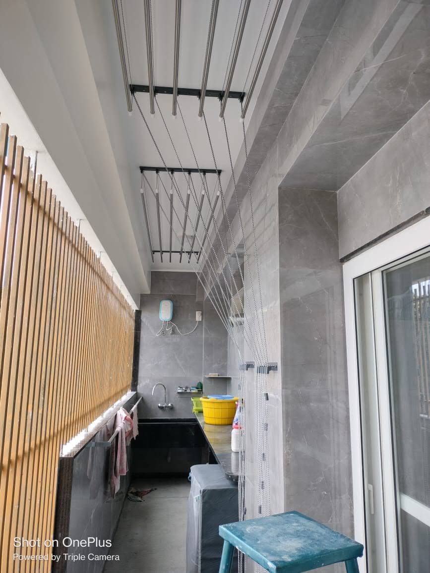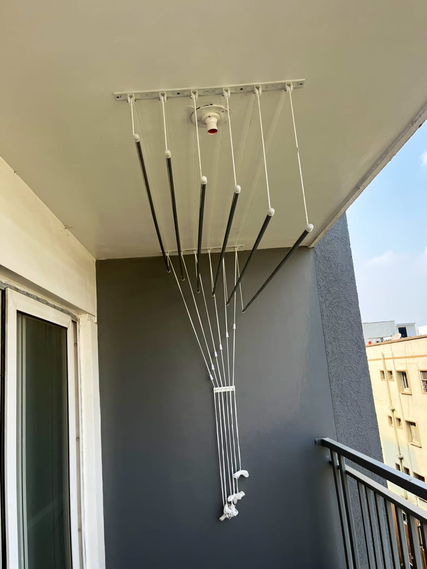 It iszero-maintenance clothes-drying hanger and a long-lasting product. It is mostly installed on the balcony with an open space for direct sunlight. The rope system is Nylon which remains safe and smooth to use even after direct sunlight. We offer mainly two types of rope systems, the 3mm polished nylon, and the 5mm thick nylon. Both ropes are designed as per the customer’s requirements.