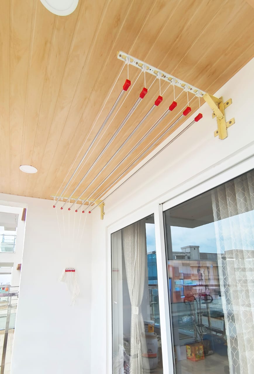 The all-new design of the clothes drying hangers is the most preferred cloth drying system today. By collecting valuable feedback and expert reviews we are introducing a better version of the balcony cloth drying hanger with an individual rope system. In this model you get a separate rope system for each stainless steel rod, this makes the product easy to use for all age groups. Generally, the traditional cloth hanger had one rope system which was difficult to use, especially for senior citizens. Here is the new model of cloth drying hanger, you get safe and easy-to-use products with stainless steel.